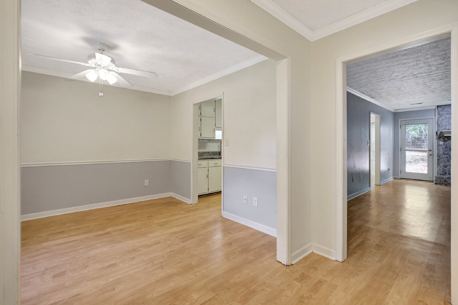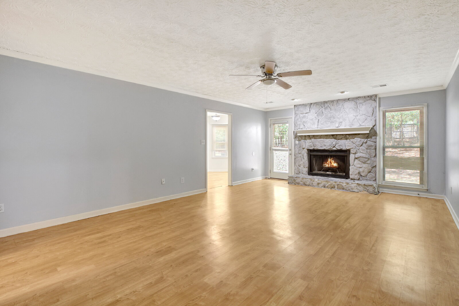 3BR/2BA ranch home in Huntington South subdivision. Spacious great room with stone fireplace, vaulted ceiling, and plenty of natural light. Kitchen with breakfast area opens to dining space. Primary suite includes private bath and closet space. Two secondary bedrooms and hall bath offer flexibility for guests or home office. Quiet cul-de-sac lot with patio and backyard space. Attached 2-car garage. Convenient Fayetteville location with access to shopping, dining, and schools in the Whitewater district.